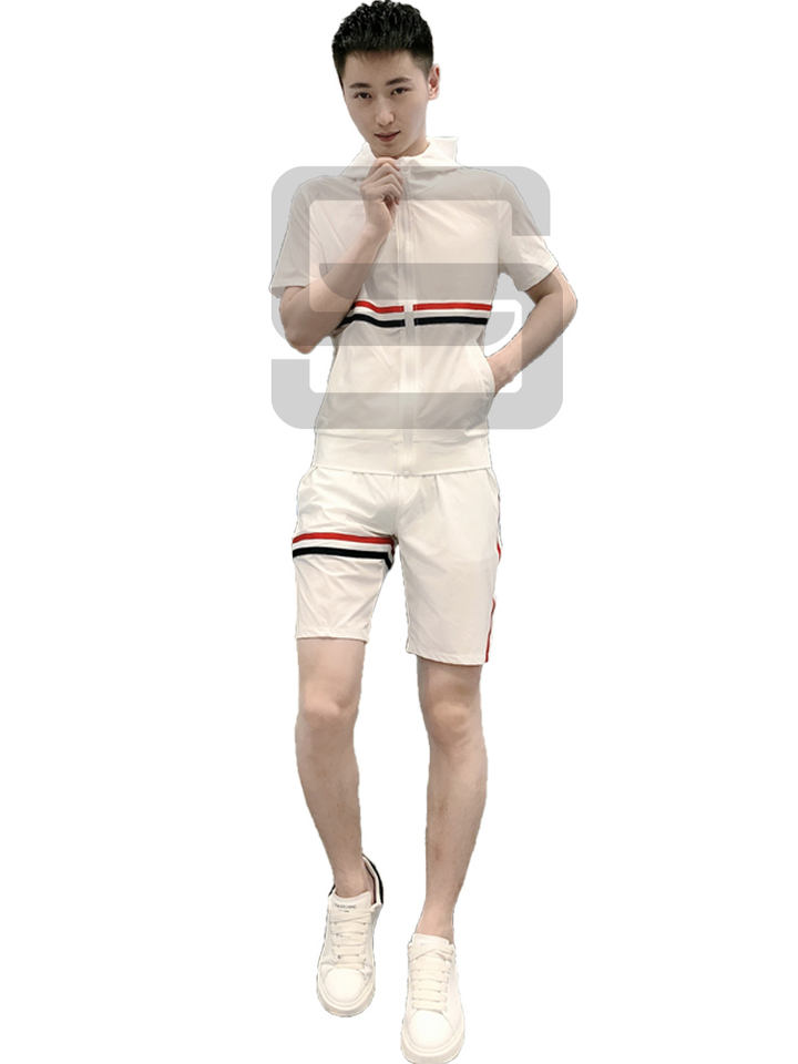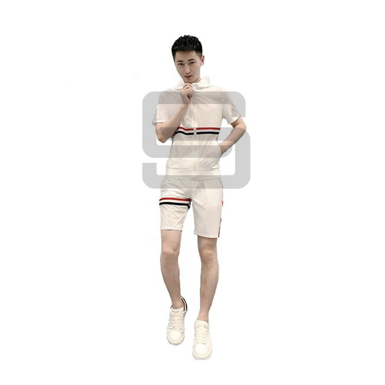 Ensemble de survêtement léger d'été pour homme, deux pièces, à capuche, manches courtes, shorts décontractés, avec logo personnalisé et tissu extensible quadridirectionnel