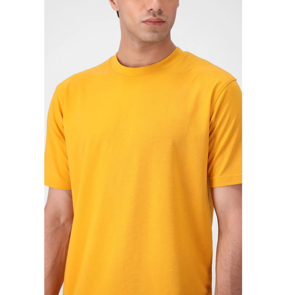 T-shirt personnalisé à manches courtes et col rond pour homme, en coton 100% tricoté, jaune, coupe ample, respirant, écologique et léger, idéal pour l'été