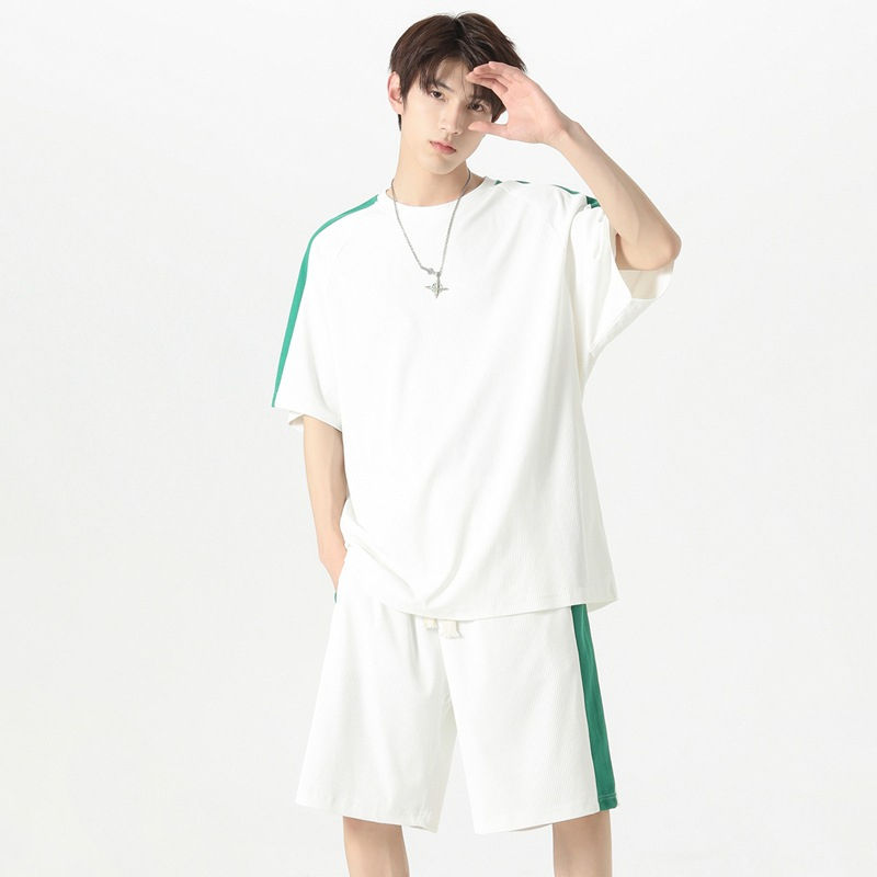 Costume de sport court d'été pour hommes, ensemble t-shirt et short à manches courtes pour hommes, couleur unie personnalisée