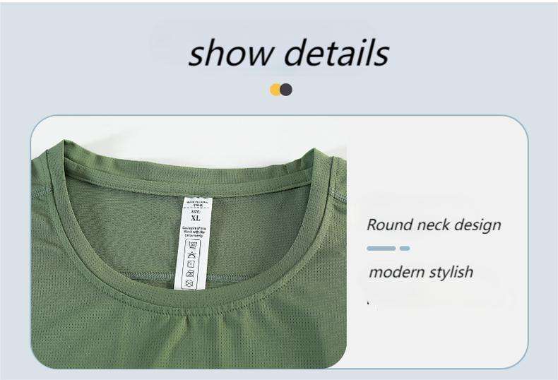 T-shirt d'été à manches courtes pour hommes, coupe ajustée, séchage rapide, respirant, en soie glacée, style de cou confortable pour la course à pied.