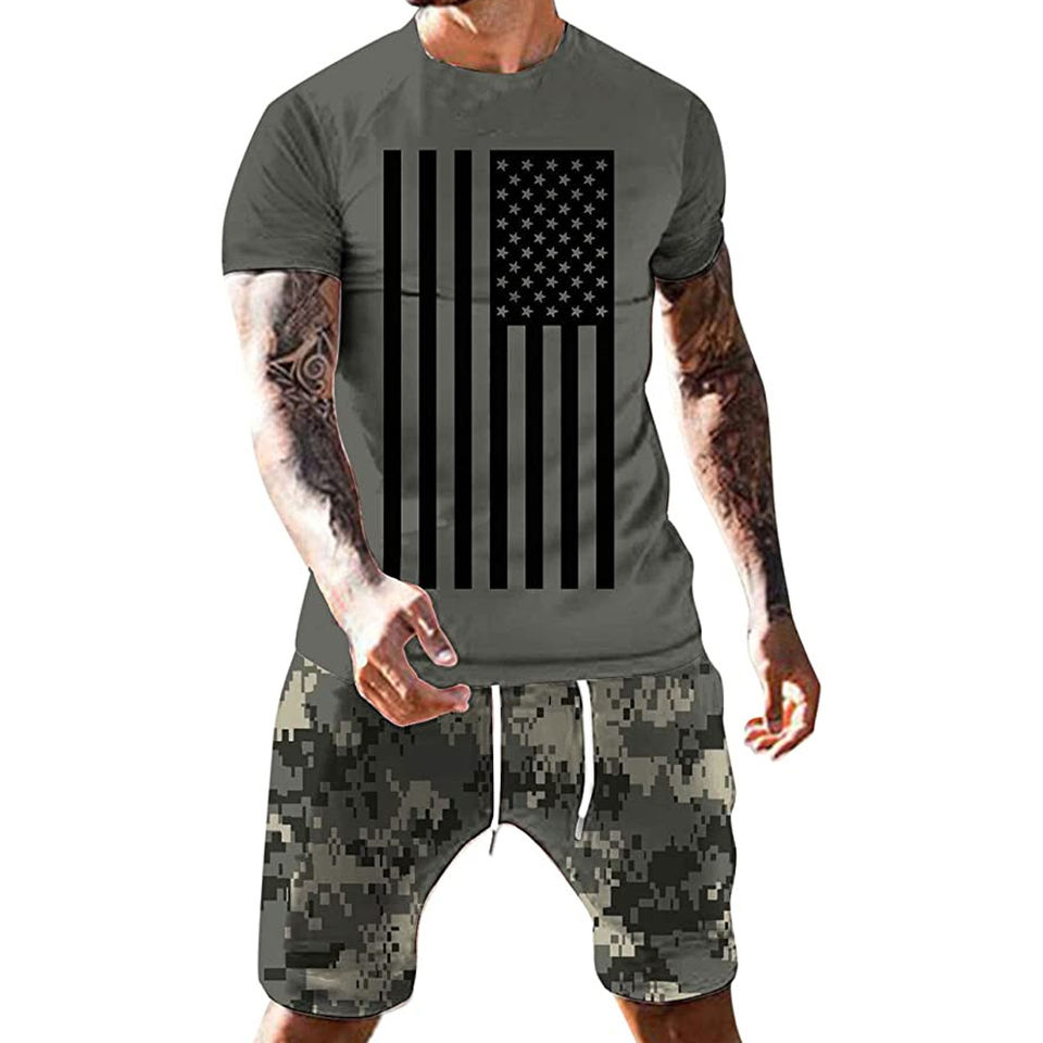 Men's Summer Sport Sets Short Sleeve Solid T-Shirt and Shorts Hot Selling Maternity Two-Piece Set