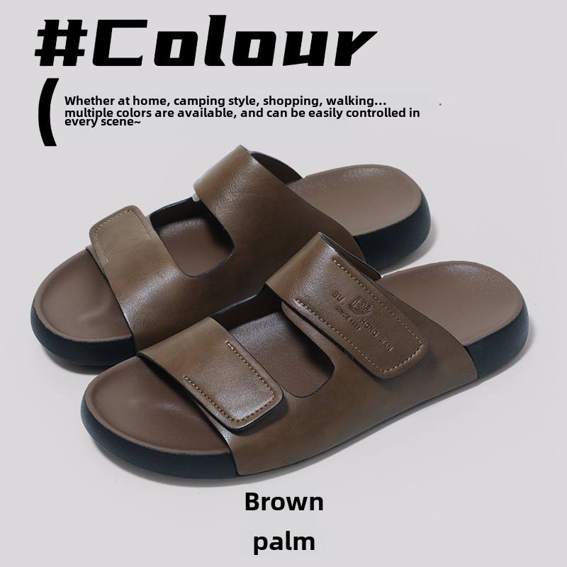 Sandales à Enfiler Sportives d'Été K-Style pour Homme, Pantoufles d'Intérieur à Semelle Épaisse et Velcro avec Semelle Intérieure en PU