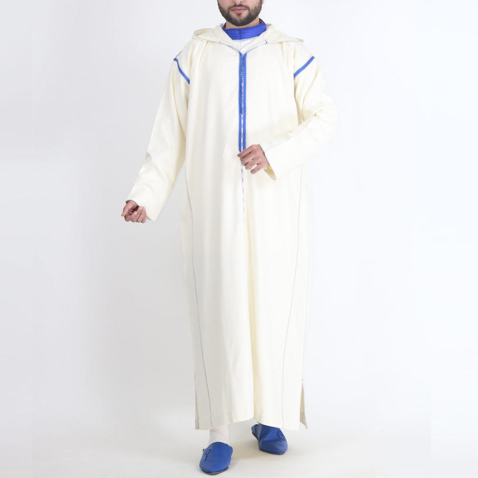 Men's Summer White Hooded Thobe Casual Modest Muslim Robe Breathable Polyester Moroccan Djellaba M061