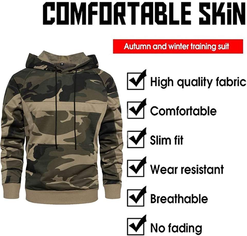 Ensemble de survêtement unisexe 2 pièces coupe ajustée effet délavé camouflage avec capuche, logo et couleur personnalisables, en polyester/coton de haute qualité