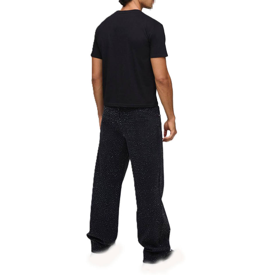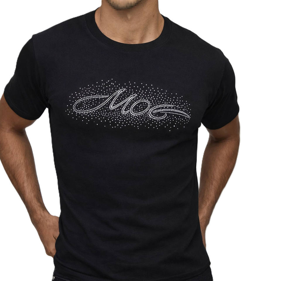 T-shirt pour homme en coton avec logo en strass, style streetwear, manches courtes, col rond, fabrication en gros personnalisée