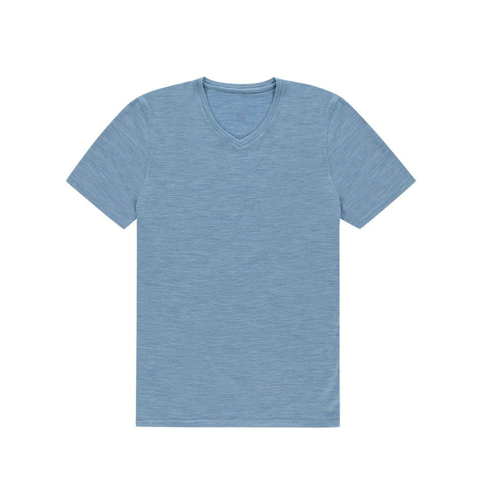 T-shirts pour hommes confortables et légers, coupe musclée, vêtements de sport, beige, col en V, ourlet incurvé, manches raglan