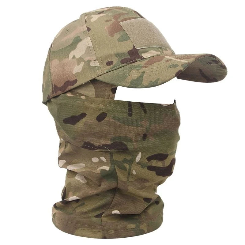 Ensemble cagoule tactique et casquette snapback pour homme – Masque intégral, casquette de baseball, protection solaire estivale, camouflage, équipement de chasse en plein air