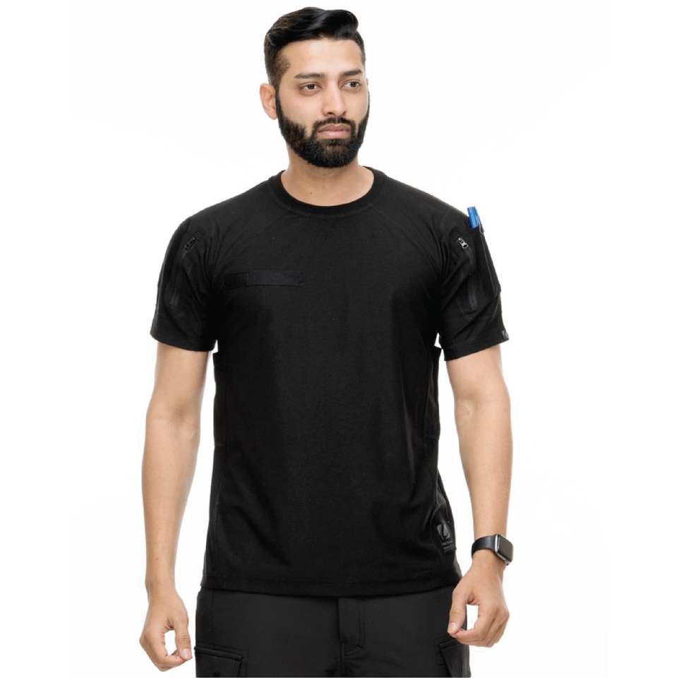 T-shirt Performance Tactique Homme-Moto Style Biker Anti-Rides Séchage Rapide Tissu Tricoté Durable Coutures Renforcées Extérieur