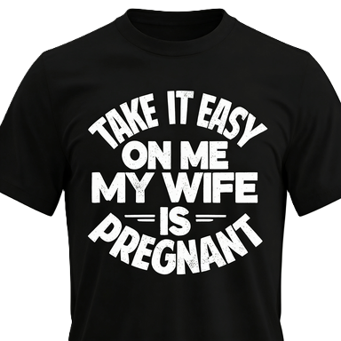 Men's Take It Easy On Me My Wife Is Pregnant Funny Dad To Be Graphic Tee Oversized Cotton Short Sleeve Streetwear T-Shirt Casual Top