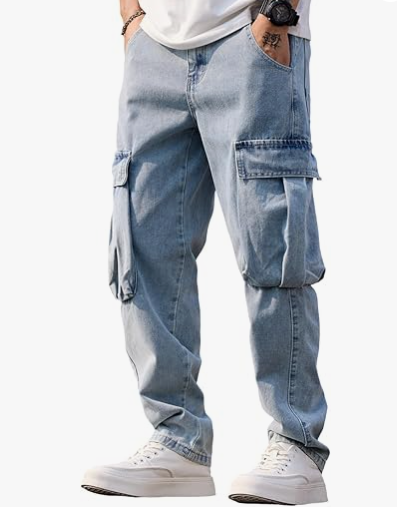 Jeans cargo pour homme, coupe droite et ample, taille haute, respirant, non extensible, style hip-hop, avec plusieurs poches, été/hiver