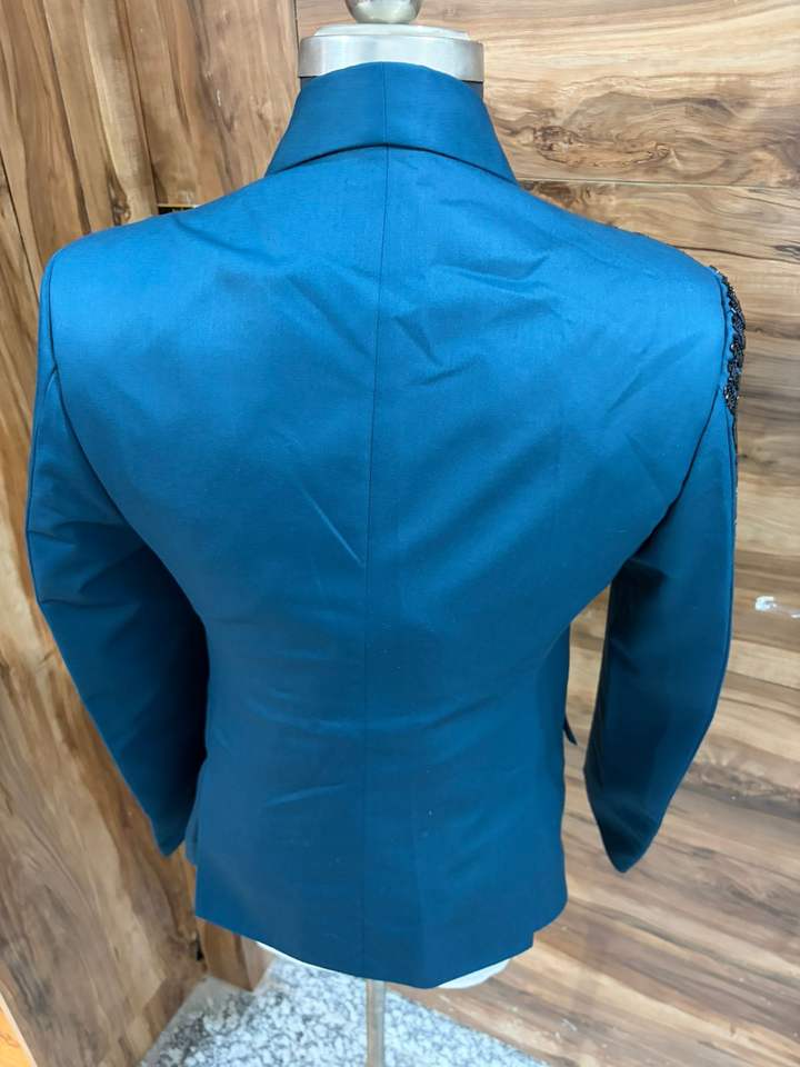 Costume de smoking brodé bleu sarcelle pour homme – Blazer de mariage et de bal orné de perles avec gilet et pantalon