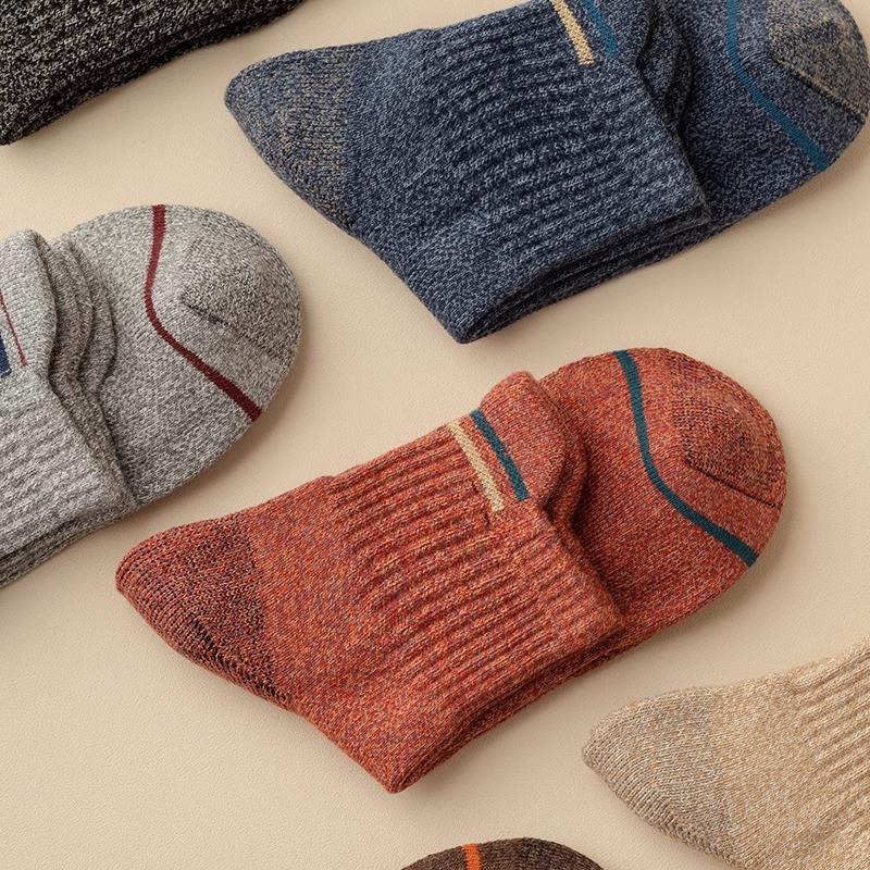 Men's Terry Cloth Athletic Socks Cotton Thickened Warm Mid Calf Basketball Sports Socks Coffee Khaki Light Gray Brick Red Navy