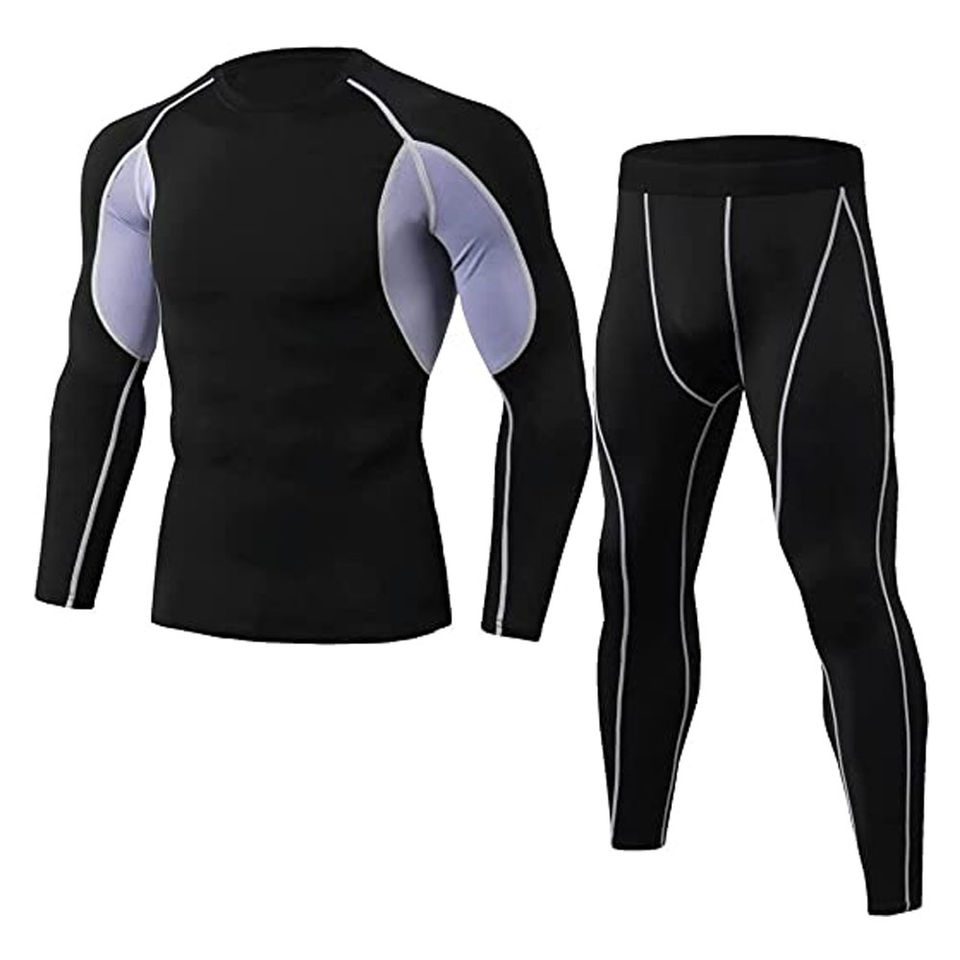 Ensemble de sous-vêtements thermiques pour homme - Chemises et pantalons de compression à manches longues, vêtements de compression imprimés pour l'entraînement