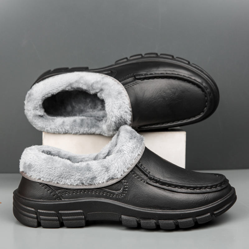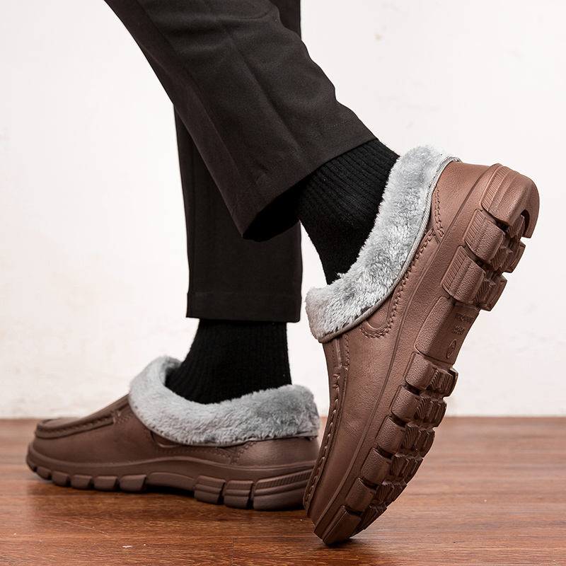 Chaussons d'intérieur et d'extérieur à enfiler doublés de peluche en mousse à mémoire de forme pour hommes