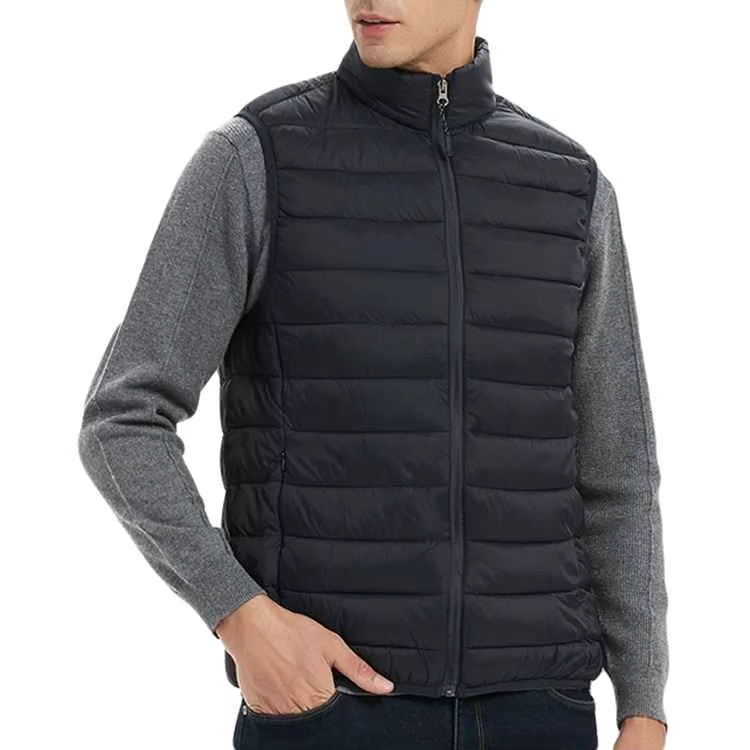 Gilet d'hiver épais pour homme avec capuche amovible, fermeture éclair, style sport, extérieur en polyester tricoté, sans manches, gilet matelassé