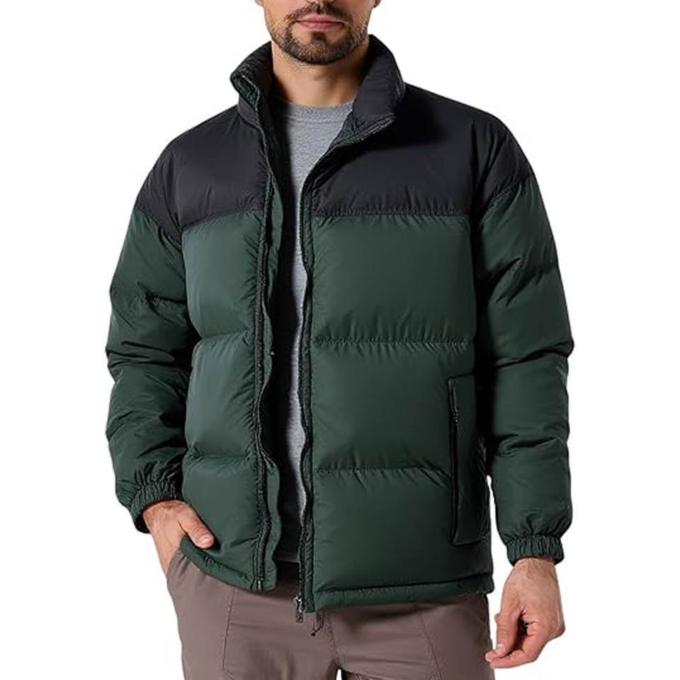 Blouson matelassé épais pour homme, color-block, chaud, pour l'hiver et le ski, avec col montant et fermeture éclair frontale, conception personnalisée OEM