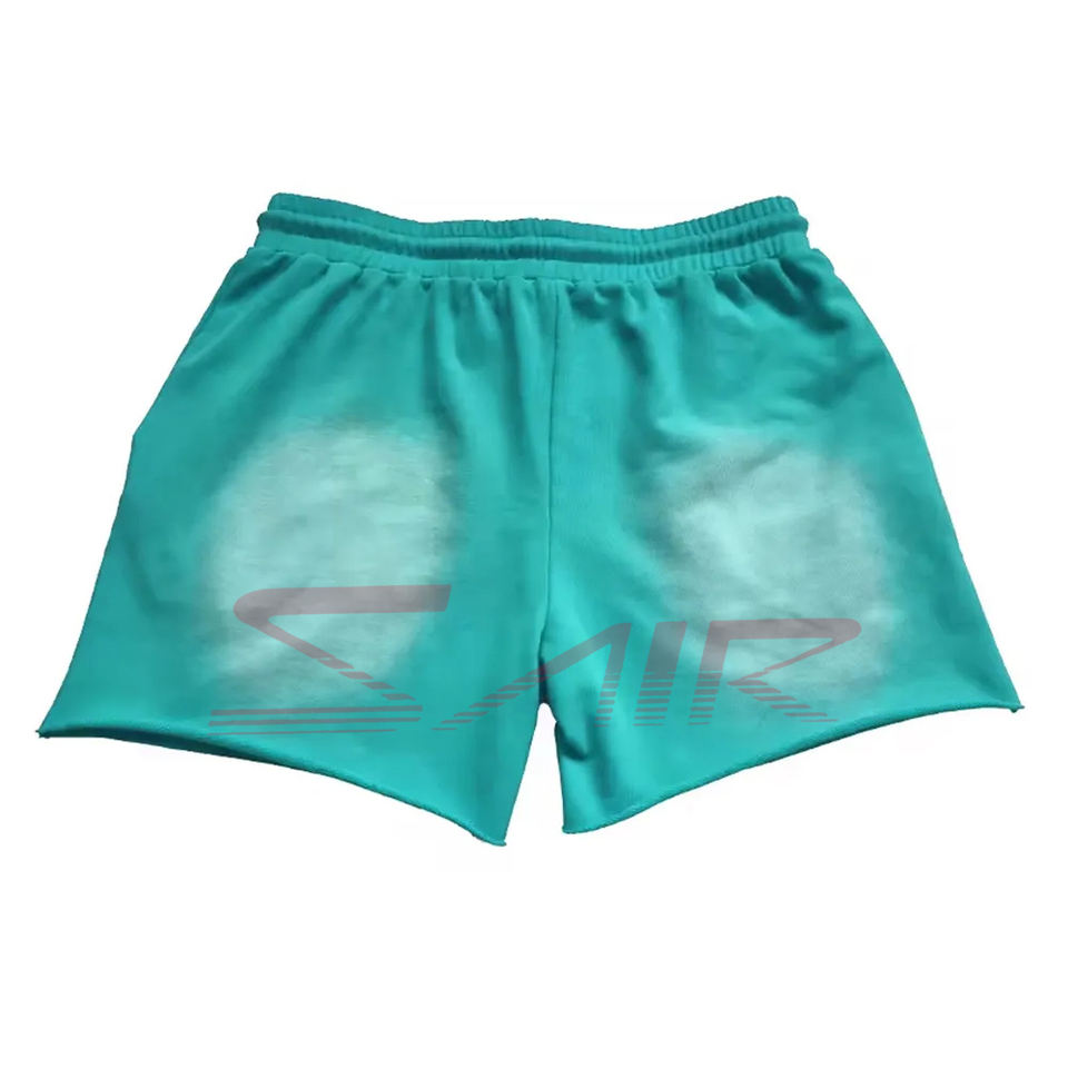 Short en toile délavé au soleil trois-quarts pour hommes avec fermeture à cordon de serrage Logo personnalisé respirant Street Wear tissage tricoté
