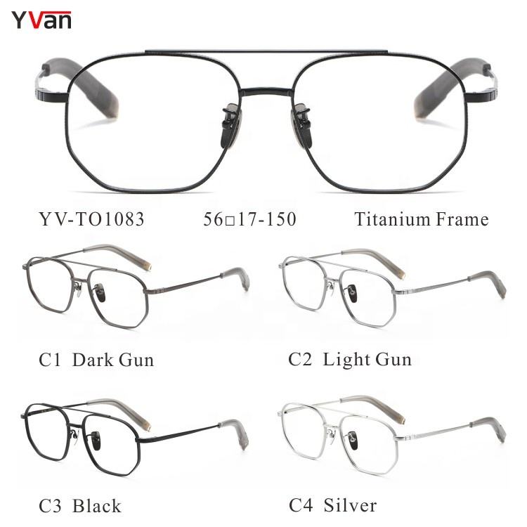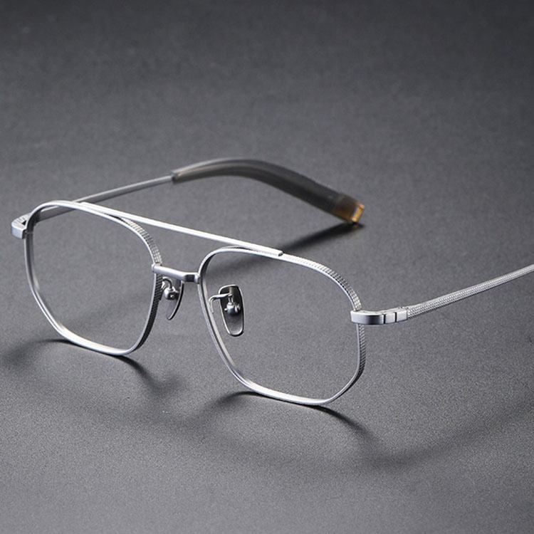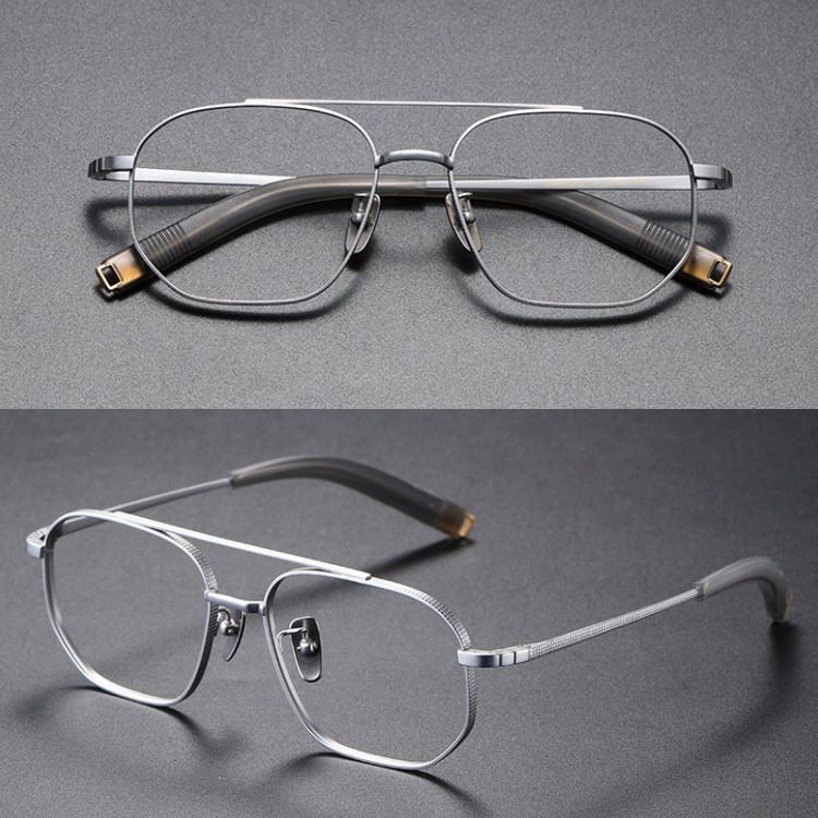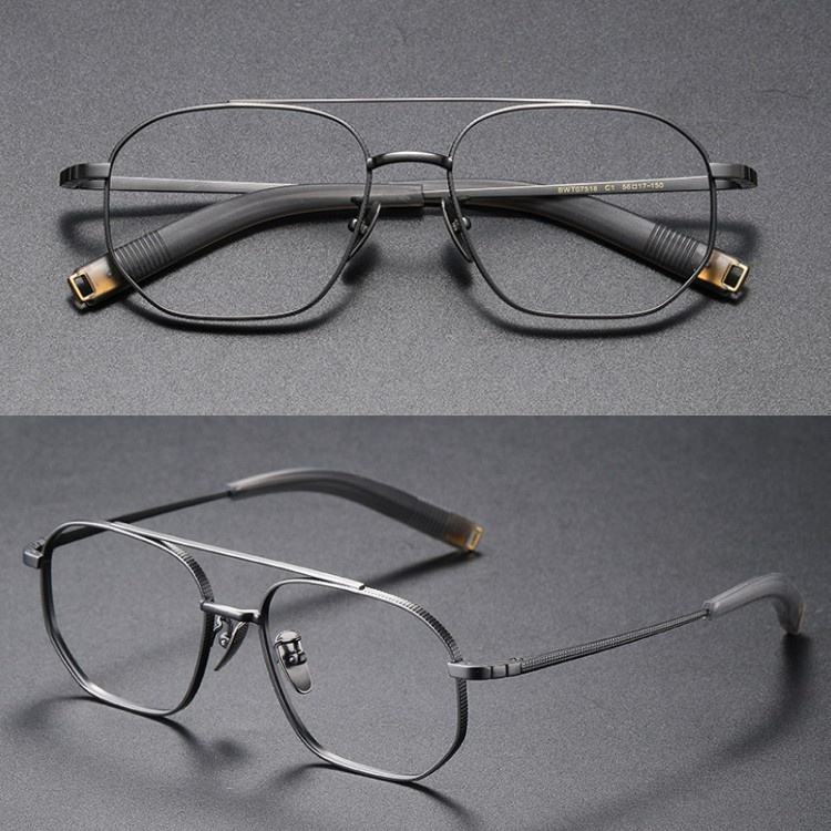 Lunettes optiques en titane pour hommes Double pont Grande taille Lunettes françaises Marques Lunettes Montures de lunettes Motif solide Fabriqué en Chine