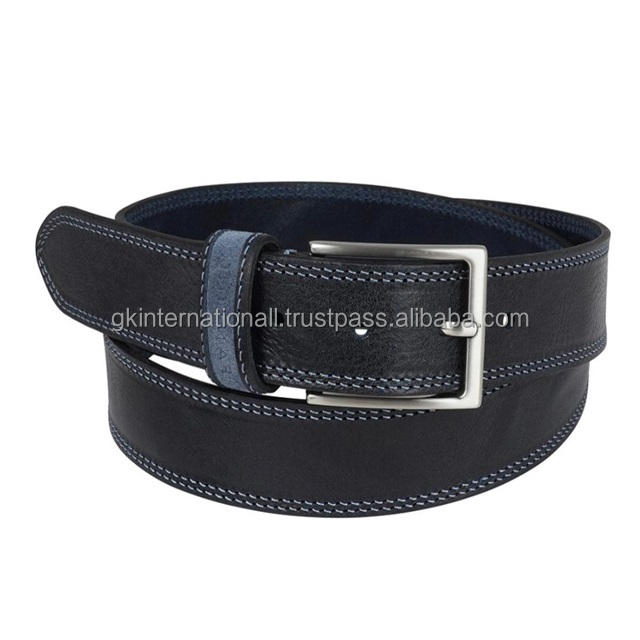 Ceinture décontractée pour hommes de qualité supérieure en cuir pleine fleur à double couture faite à la main avec boucle à une broche en alliage ceinture habillée