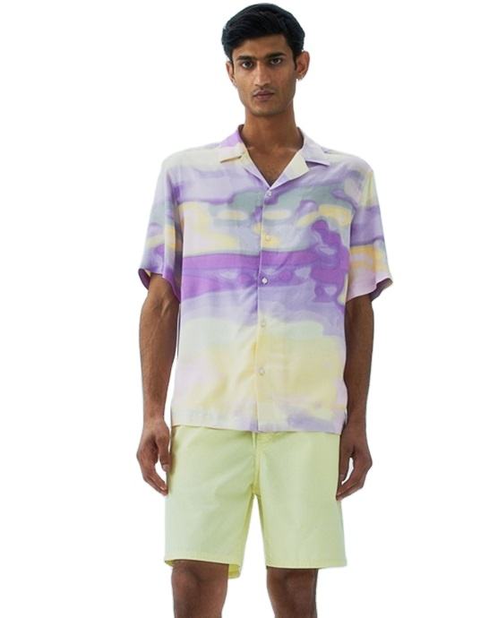 Men's Top Trending Casual Resort Shirts 100% Viscose Weave Short Sleeve Patterned Custom Brand Comfort Wear Washed Button