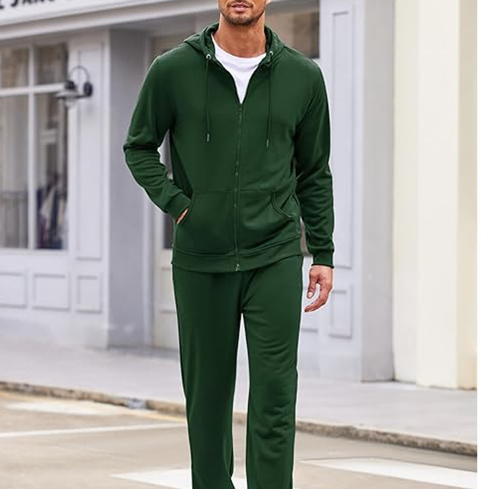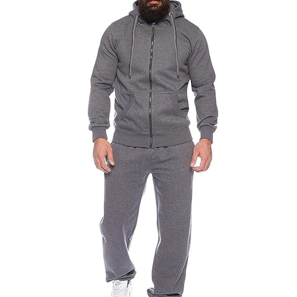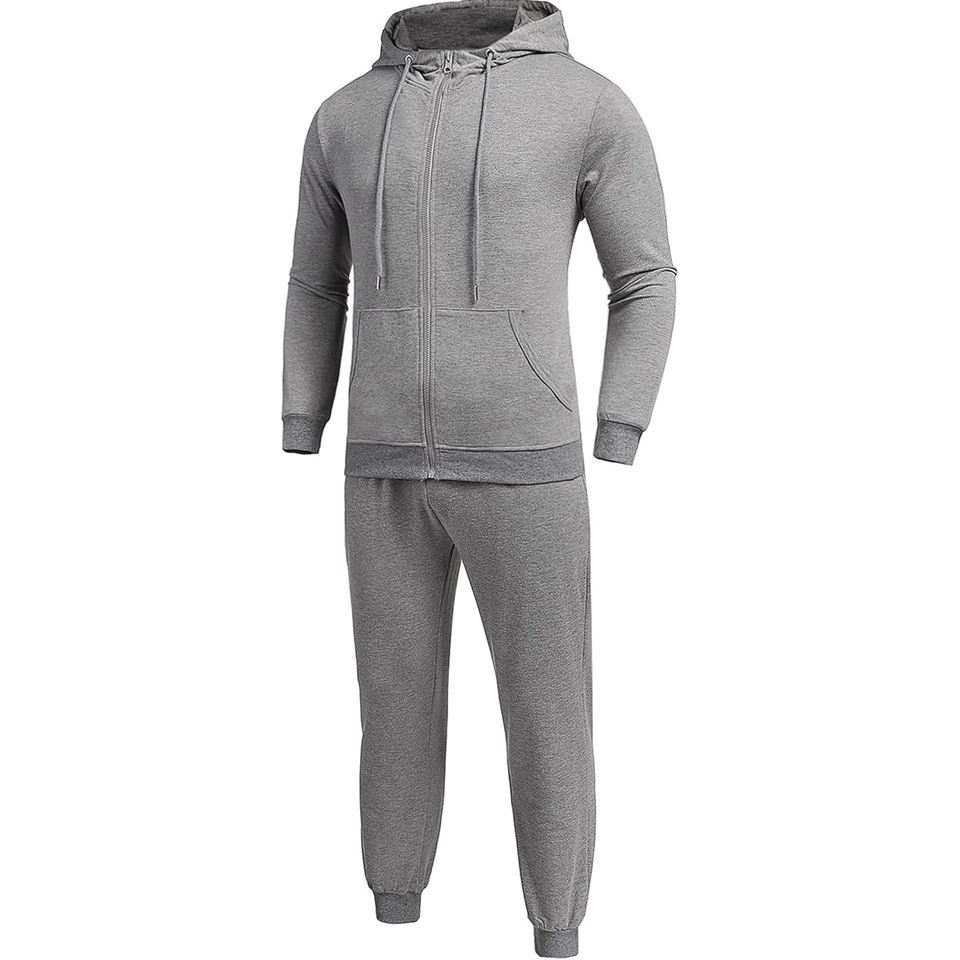 Ensemble de survêtement pour homme 2 pièces, sweat à capuche et pantalon de jogging zippé, tenue de sport décontractée à manches longues