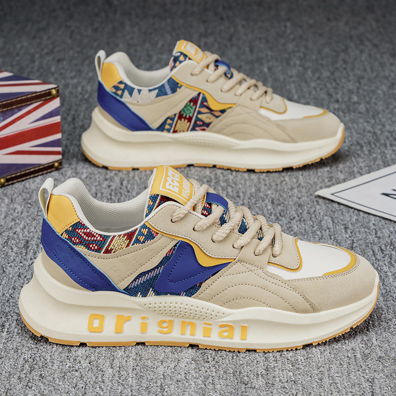 Chaussures de sport décontractées brodées imprimées à la mode pour hommes Nouveau style Chaussures de basket-ball à semelles épaisses Confortables et polyvalentes