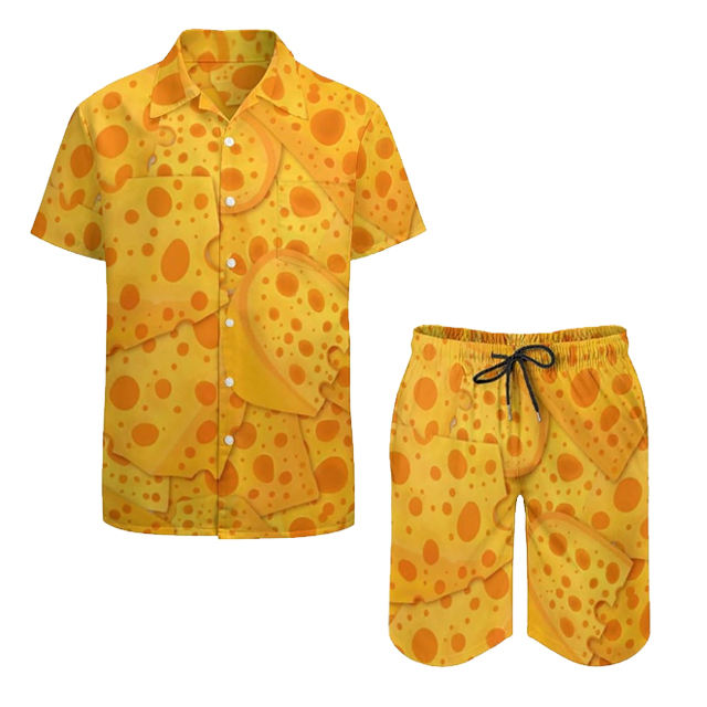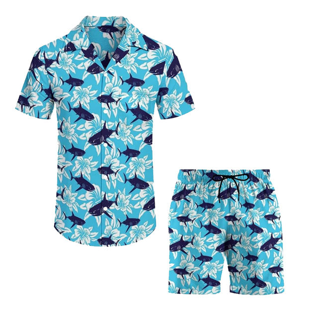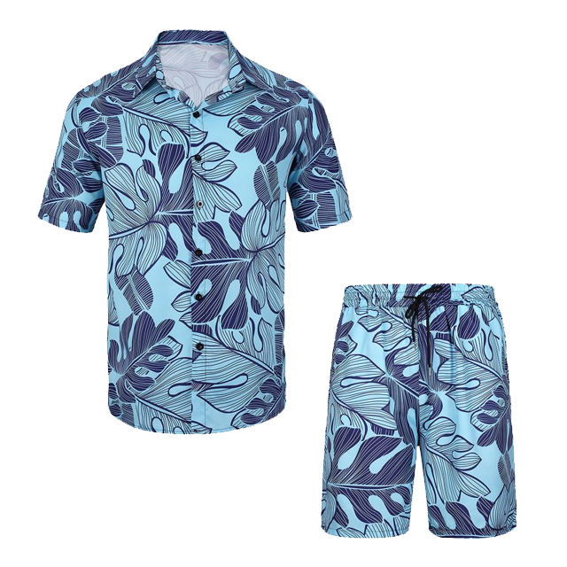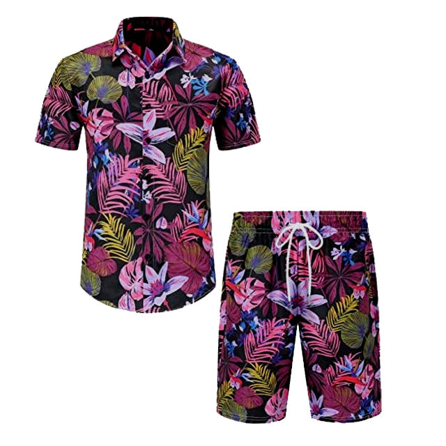Men's Trendy High-Collar Vintage Floral Hawaiian Beach Shirt Short Set with DTF DTG Screen Digital Printing Sublimation