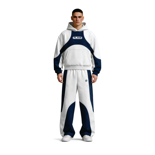 Ensemble de survêtement oversize bicolore pour homme – Sweat à capuche et pantalon de jogging coupe décontractée – Style streetwear