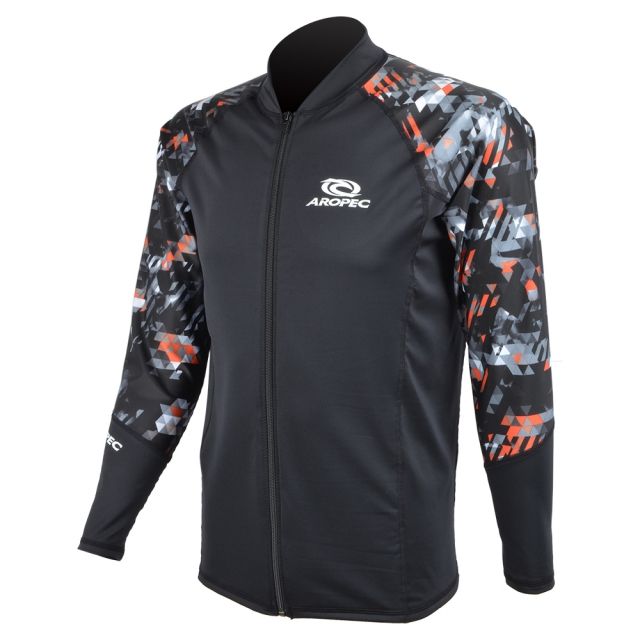 Rashguard pour homme à manches longues UPF50 en polyester/nylon, imprimé sérigraphié avec motif géométrique