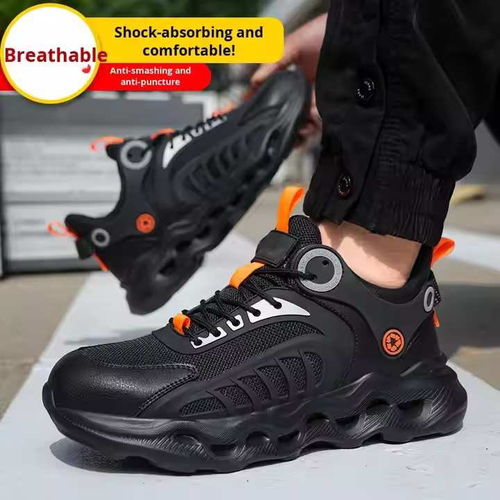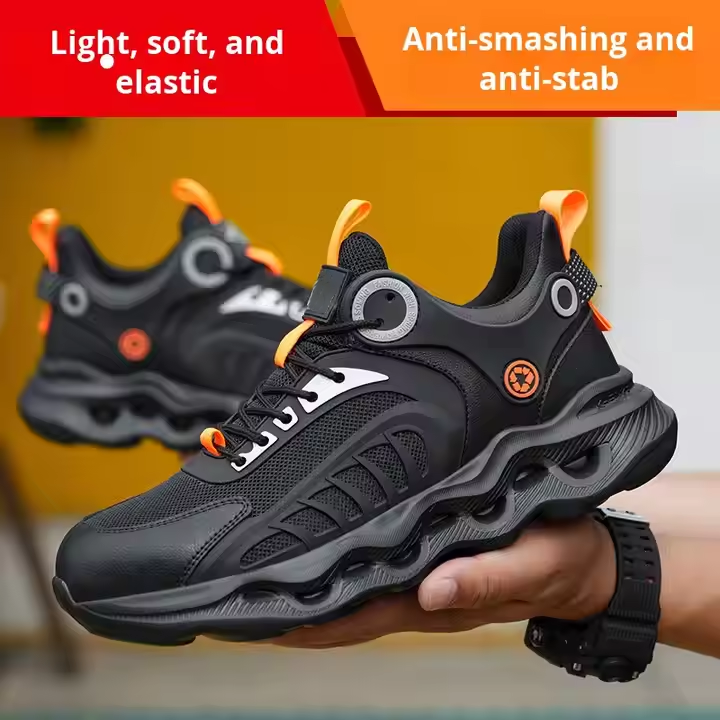 Chaussures de sécurité respirantes ultra-légères pour hommes Chaussures de travail élastiques à bouton rotatif pour hommes Anti-Smash Kevlarr Stab-Proof EVA