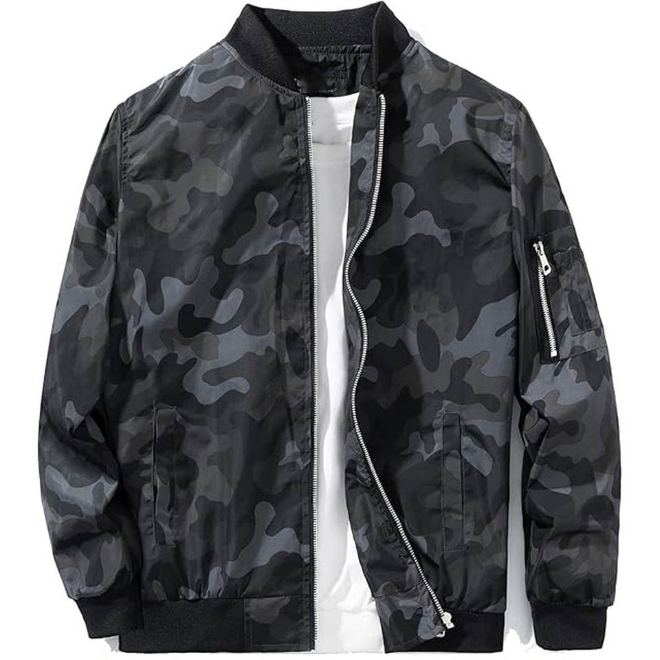 Blouson de style camouflage en polyester teinté de couleur unie pour hommes Blouson aviateur de haute qualité avec col montant au design unique pour hommes