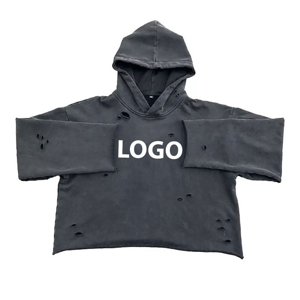 Sweat à capuche en polaire de style unique respirant et lavé à l'acide pour hommes avec impression numérique brodée pour l'hiver