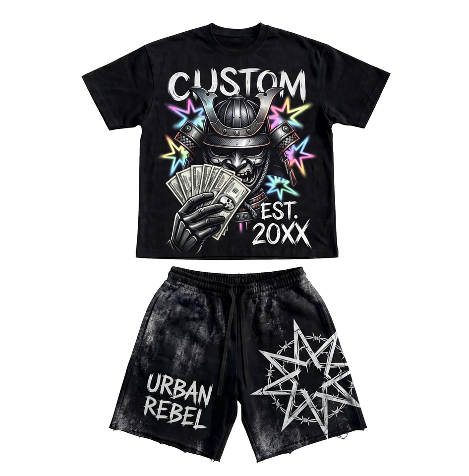 Ensemble T-shirt et short unisexe pour homme, délavé, avec strass et motifs graphiques thermocollés, coupe ample et décontractée