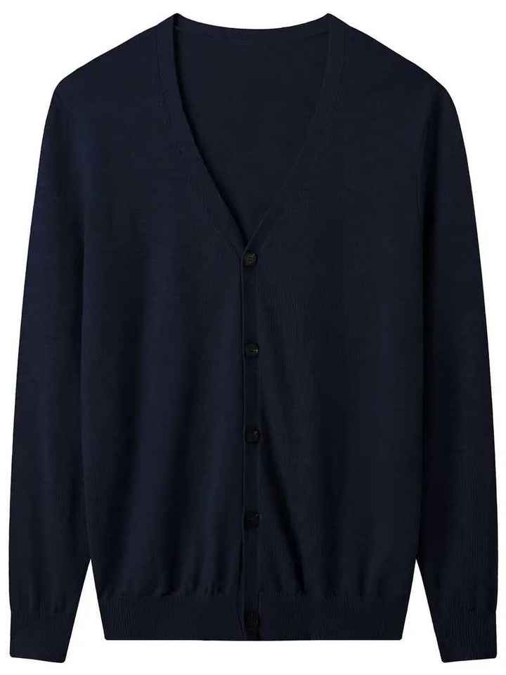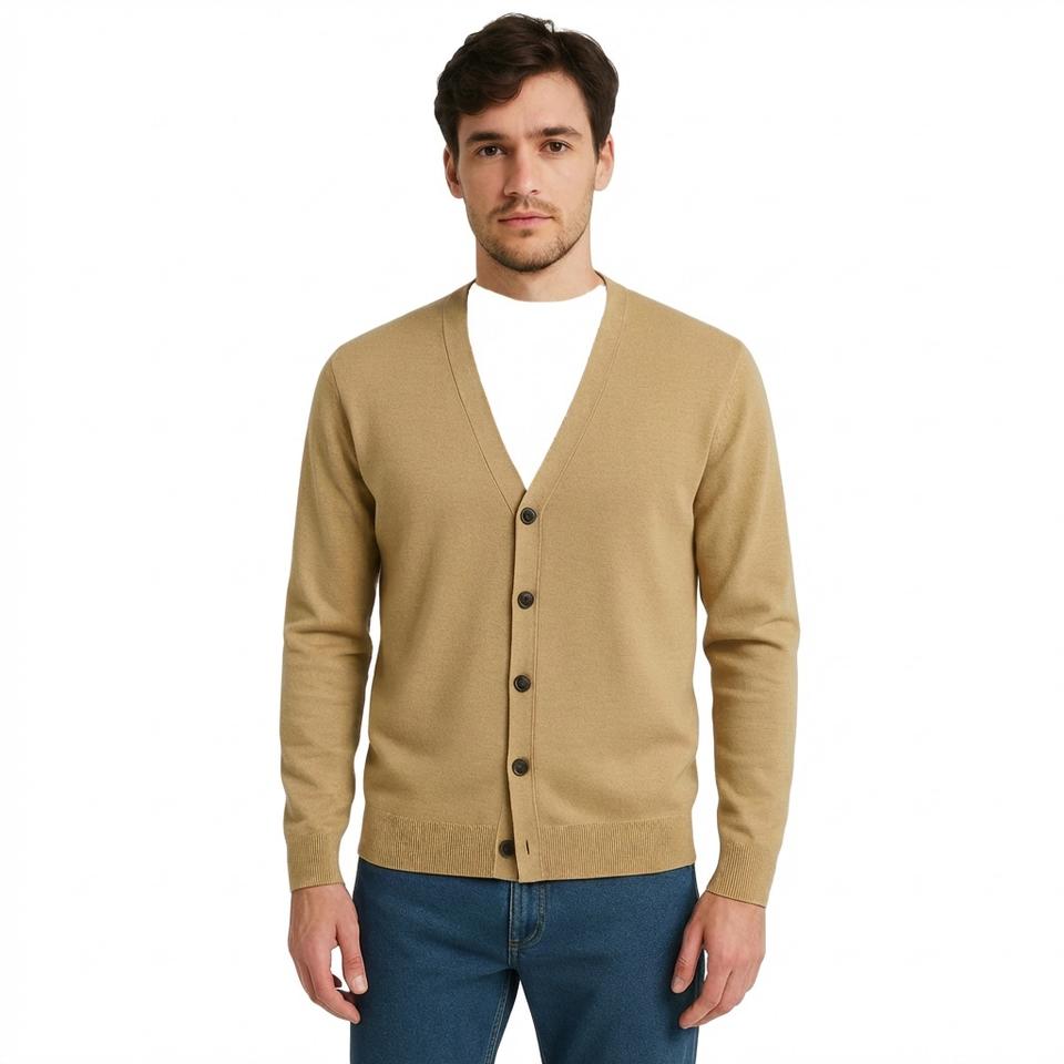 Cardigan en tricot uni à col en V pour homme, manches longues, boutonné, pull décontracté coupe ajustée, automne-hiver, kaki, tricot pour homme