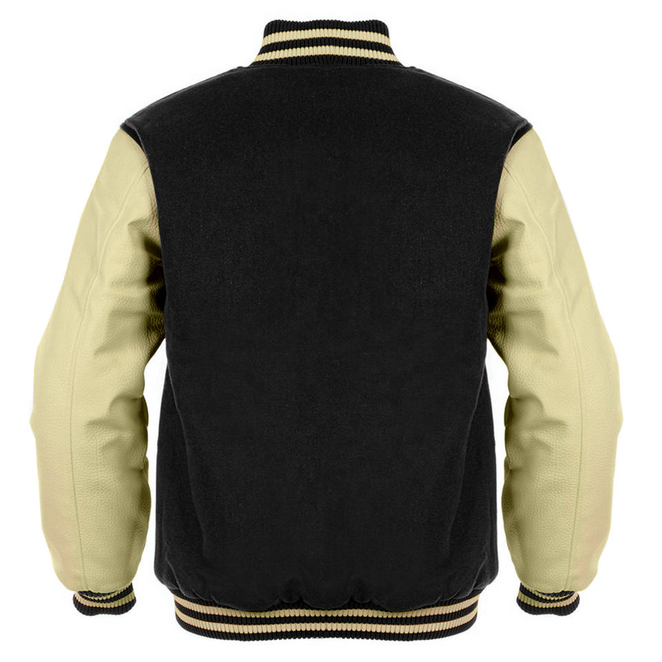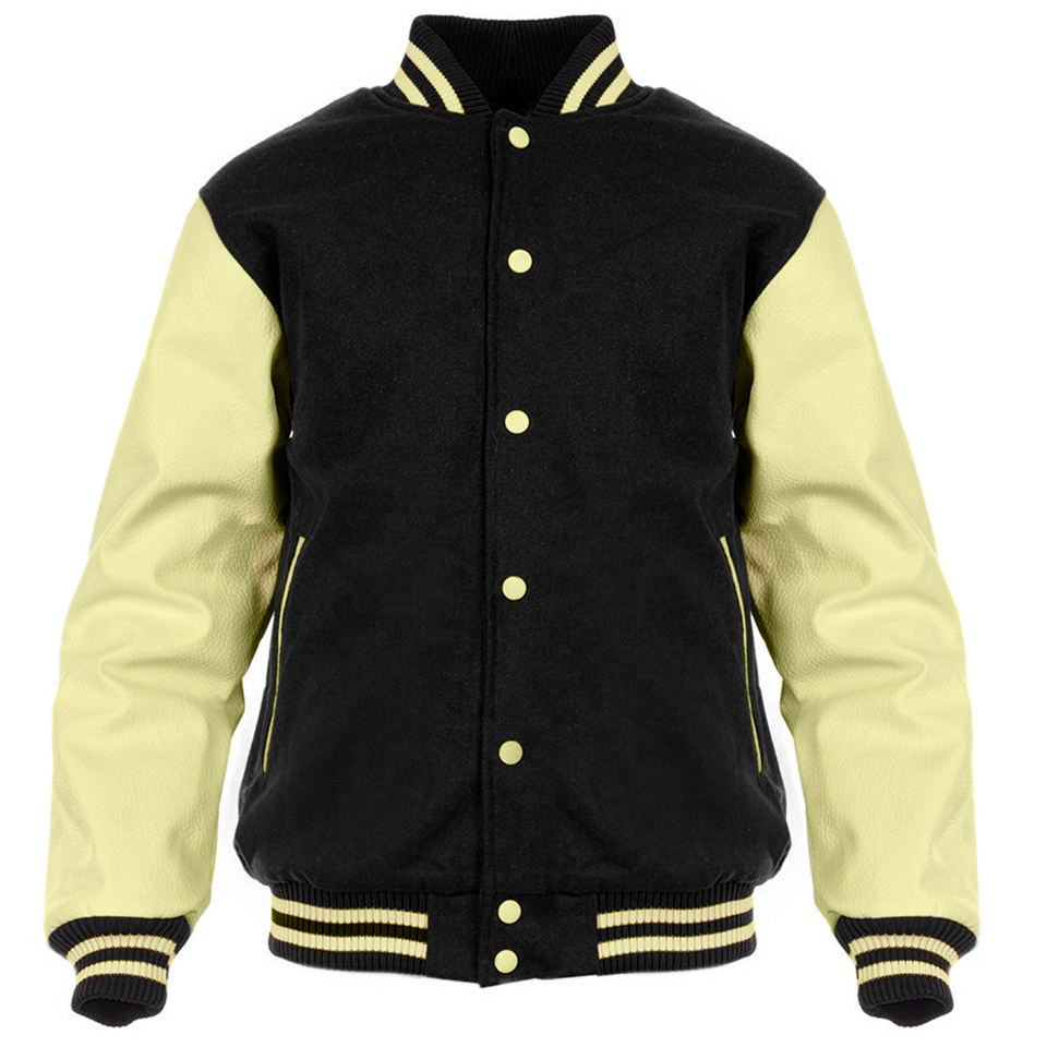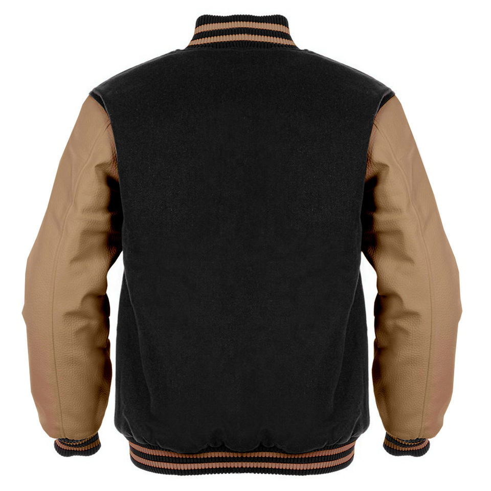 Veste Varsity Letterman pour hommes en laine noire, manches en cuir de chameau, veste classique de collège et de baseballjacket pour hommes