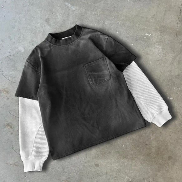 T-shirt à manches longues polyvalent 100% coton pour hommes Motif solide sur mesure pour un look sportif décontracté Tissu tricoté de haute qualité