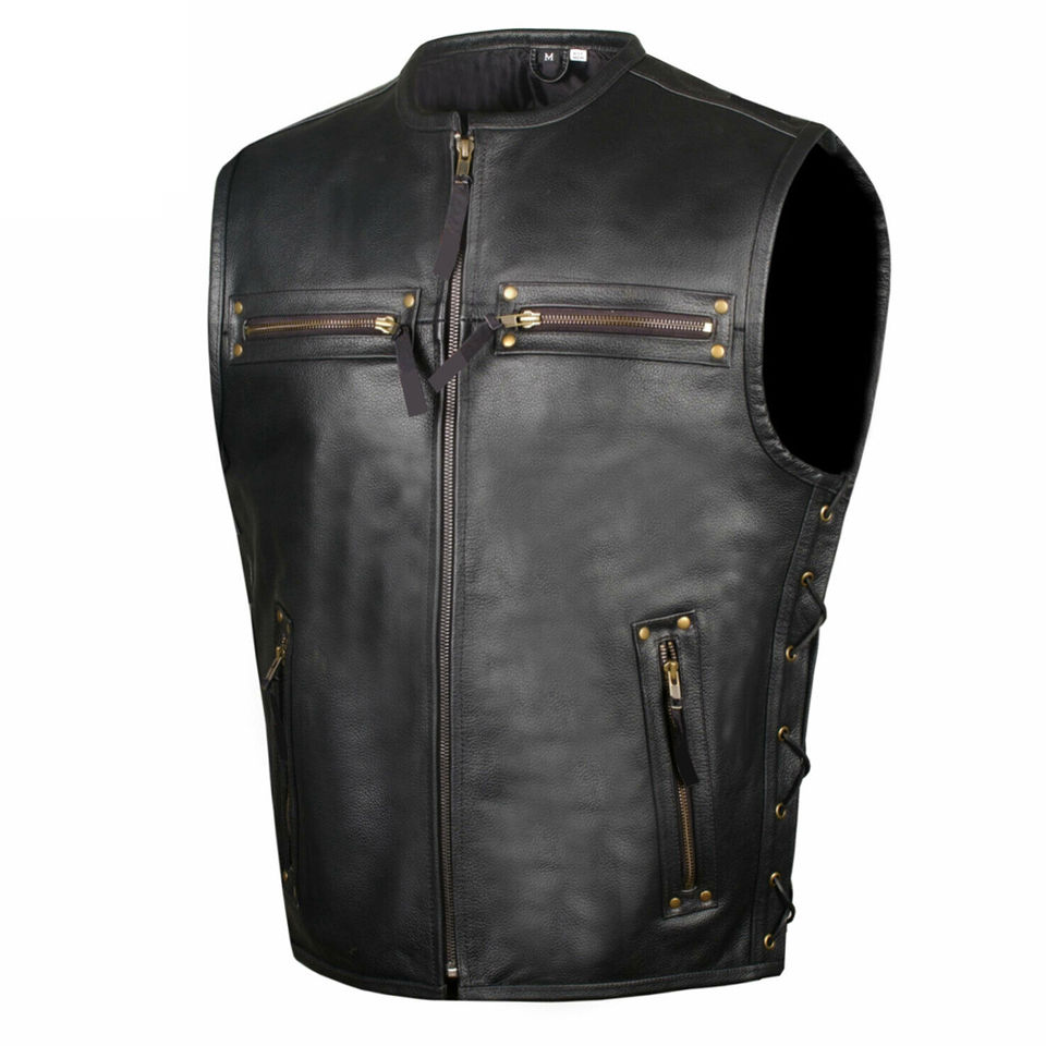 Gilets pour hommes Gilet en cuir de créateur Gilet de motard en cuir pour hommes avec épaule Gilet en cuir Veste sans manches Manteau