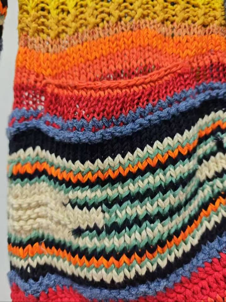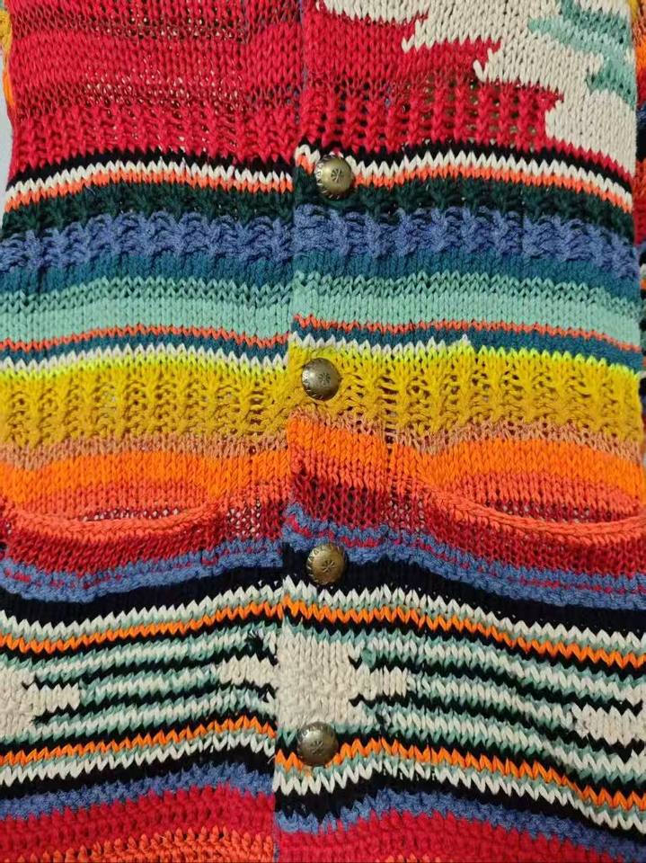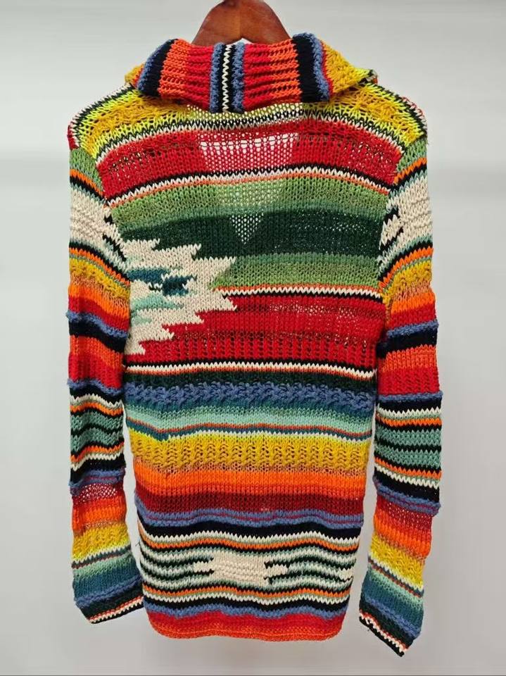 Cardigan Arc-en-ciel Vibrant pour Homme – Motif Géométrique Coloré, Tricoté à la Main, Anti-Plis, Respirant, Déclaration de Mode Audacieuse
