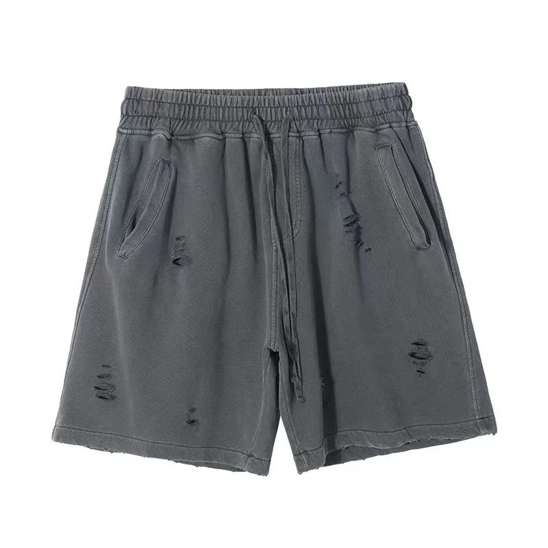 Men's Vintage Acid Washed French Terry Cotton Shorts Summer Loose Fit Mid Custom Solid Pattern Print Baggy Streetwear Casual