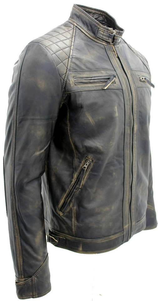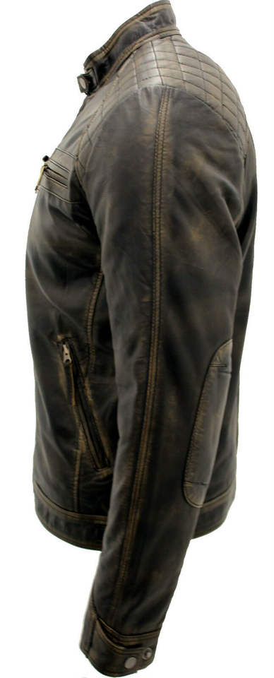 Veste de motard en cuir vintage pour homme | Veste de moto rétro matelassée | Vêtement d'extérieur formel de style streetwear avec fermeture éclair et logo sur le devant