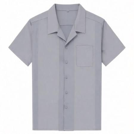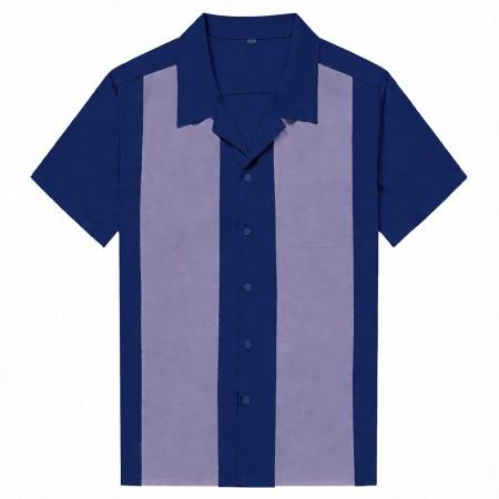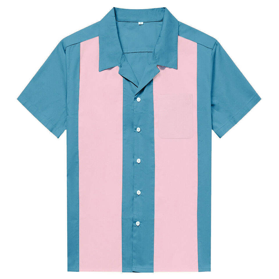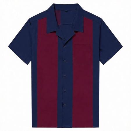 Chemise de bowling vintage pour homme à deux tons avec panneaux contrastés verticaux, col à encoche ouverte et tissu respirant performant