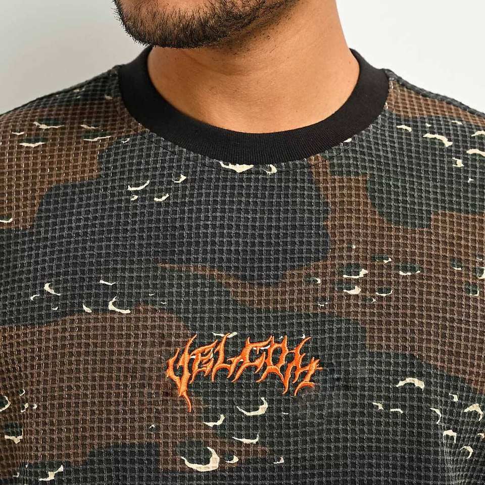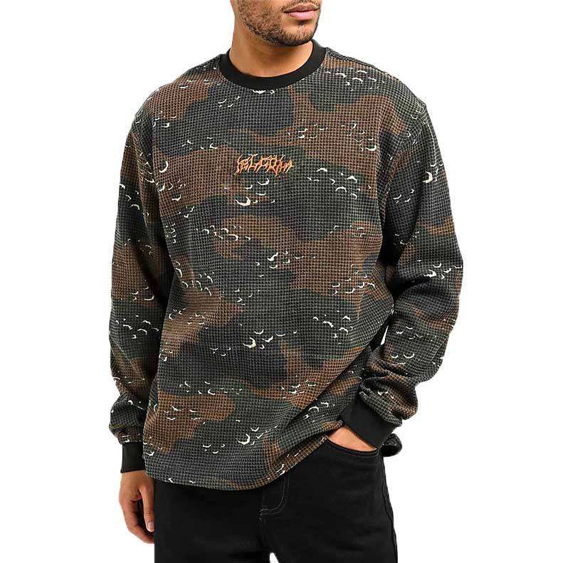 T-shirt homme en maille gaufrée unie, col rond, manches longues, coupe oversize, 320 g/m², style streetwear