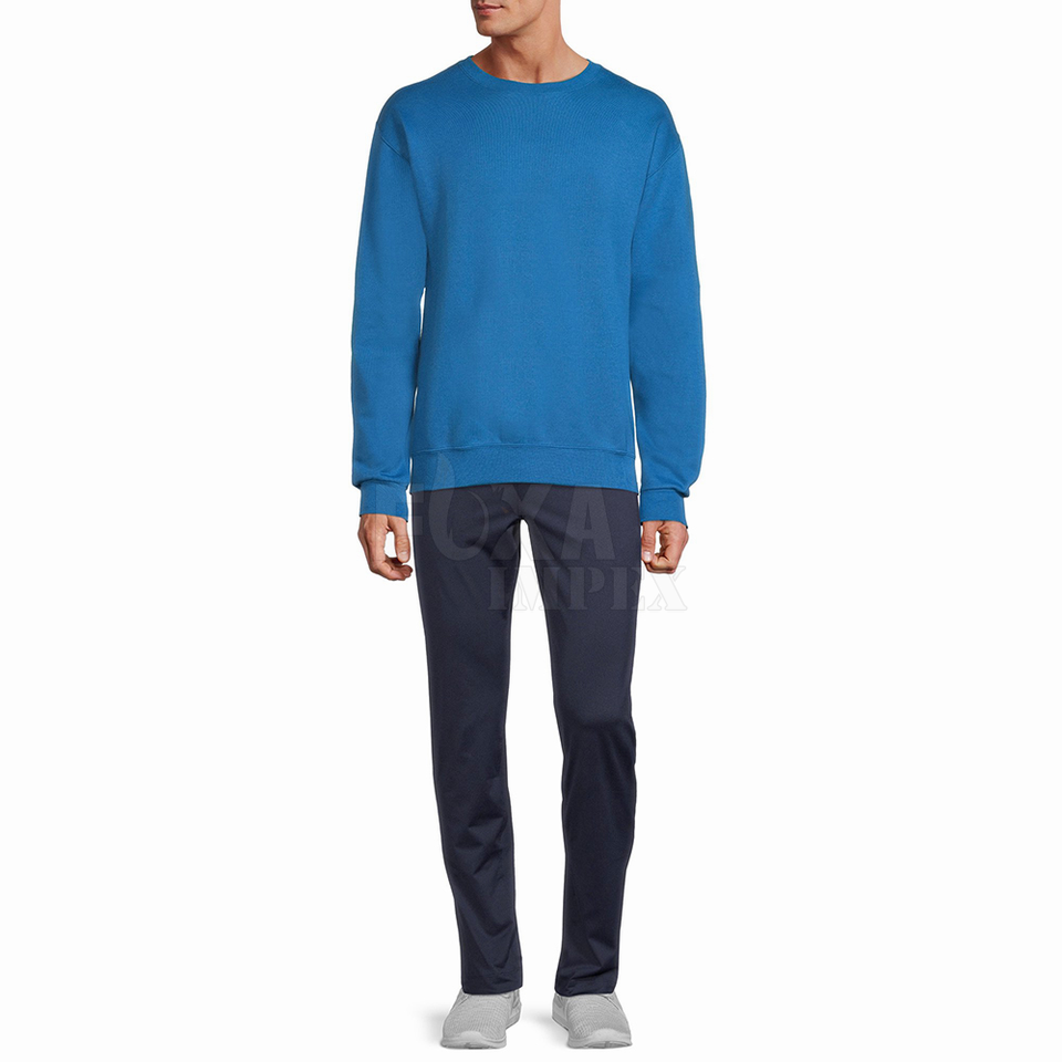 Sweat-shirt à col rond chaud pour hommes échantillon gratuit pull à manches longues doublé polaire hiver automne décontracté élégant confortable coupe vente