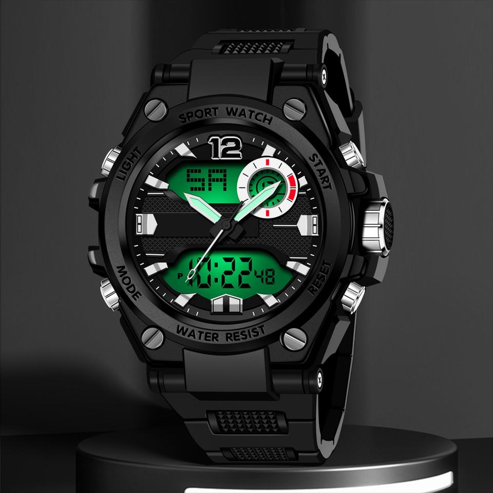 Montre pour homme multifonctionnelle avec lumière nocturne, étanche, montre électronique de type G, analogique-numérique, double affichage, style professionnel