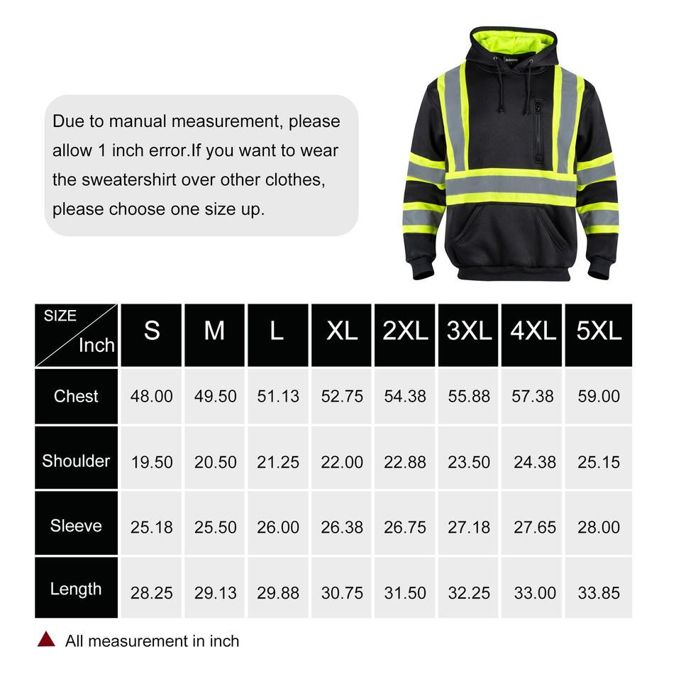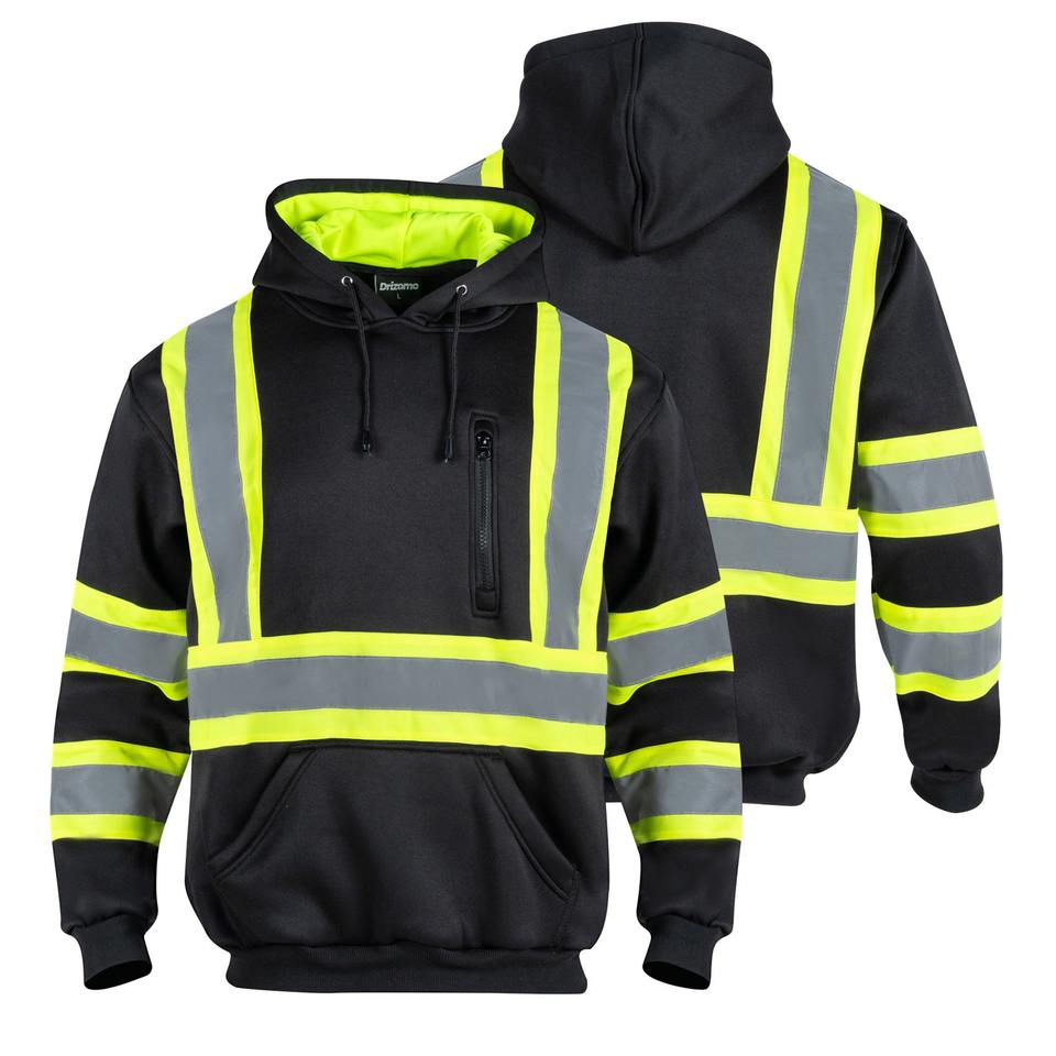 Sweat-shirt de travail unisexe, résistant à l'eau, réfléchissant, de sécurité, haute visibilité, ignifuge, noir