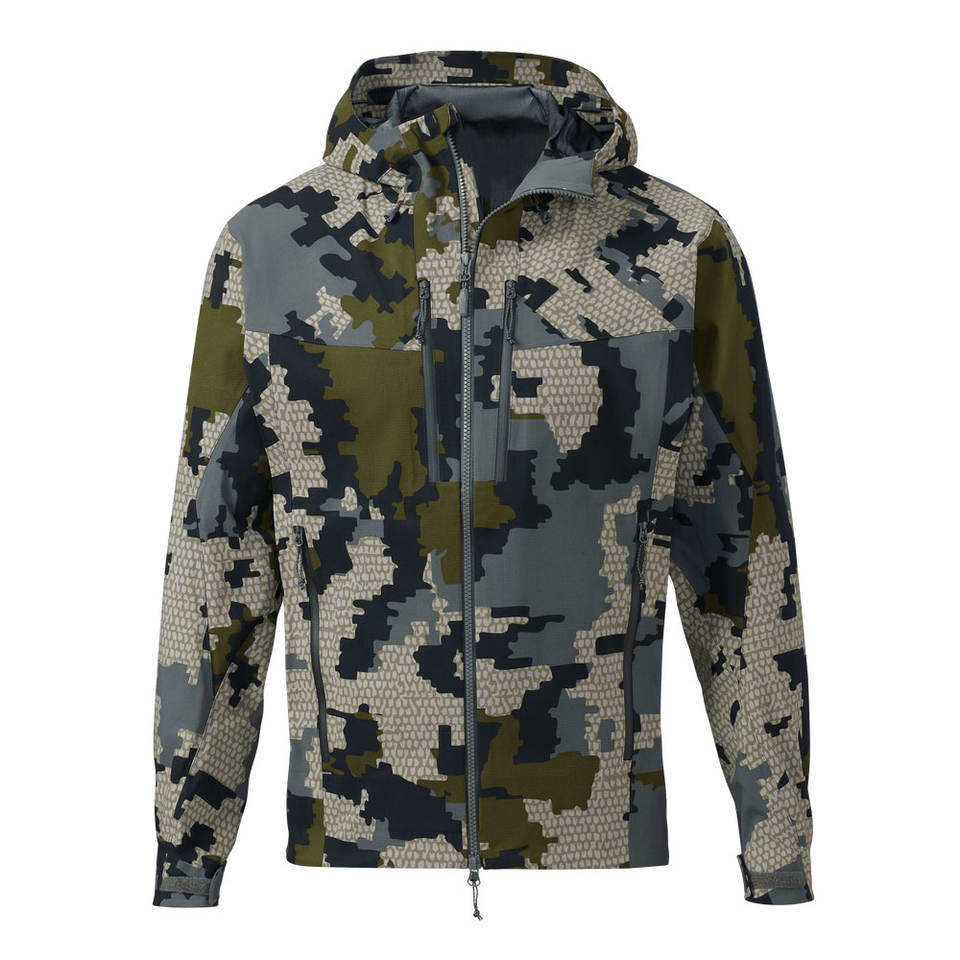 Men's Waterproof Camouflage Hunting Jacket Outdoor Softshell Hooded Coat Breathable Windproof Gear for Hiking Climbing Fishing