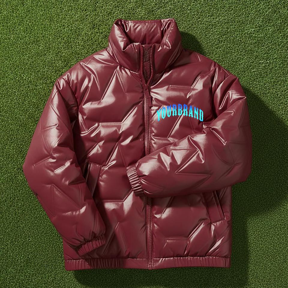 Manteau d'hiver rembourré en duvet brillant pour homme, imperméable, grande taille, avec boutons, noir, avec capuche, logo personnalisé
