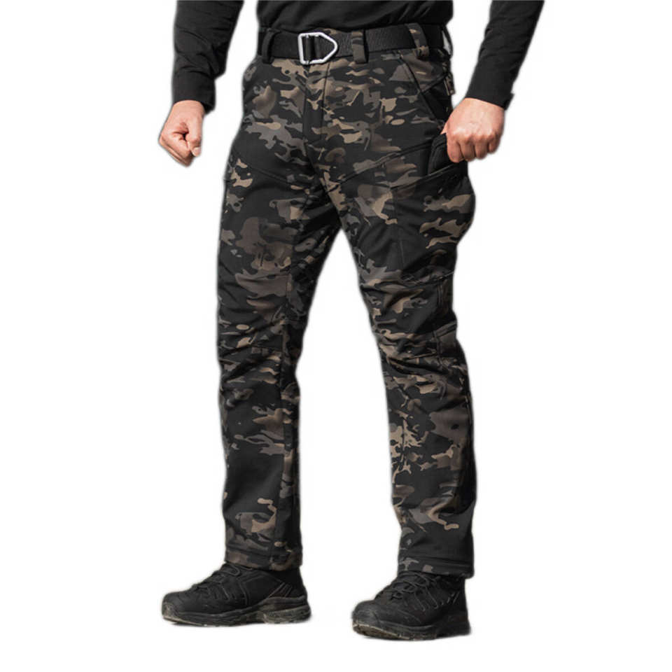 Pantalon de travail pour homme, imperméable, avec fermeture éclair, taille élastique, doublure polaire tactique, coupe-vent, softshell, pour l'hiver