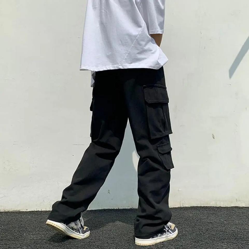 Men's White Cotton Cargo Pants Hip Hop Streetwear Style Wide Leg Mid Waist Multi-Pocket Straight Leg Sweatpants Casual Style
