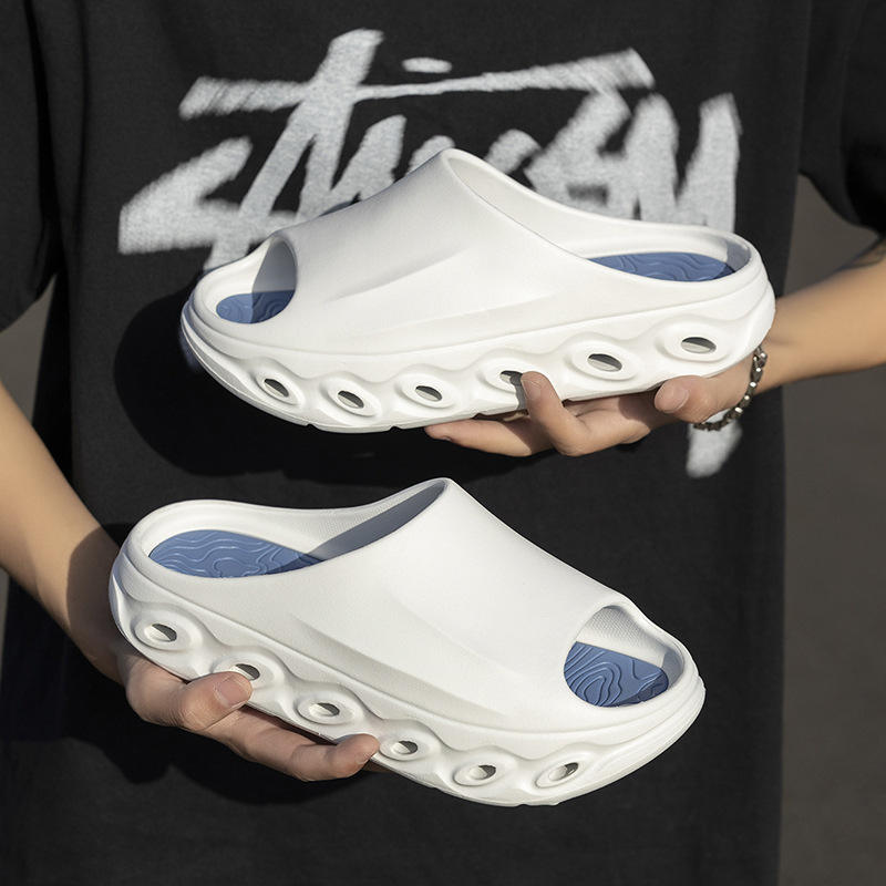 Sandales blanches pour hommes, semelle épaisse, talon de 4 cm, tongs d'été pour l'extérieur